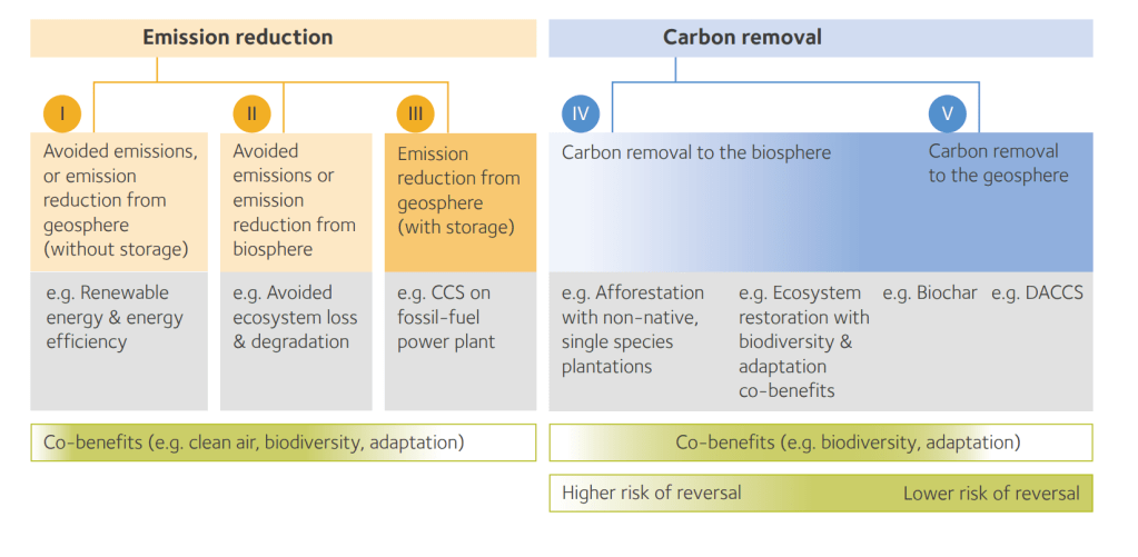 - Biosphere storage: Restoring ecosystems like woodlands, grasslands, wetlands, and marine habitats or enhancing soil carbon on agricultural land.